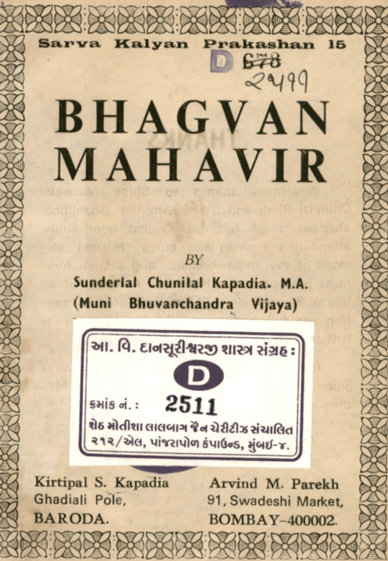 Information about Book Book Title : Bhagwan Mahavira Author : Sunderlal Chunilal Kapadia (Muni Bhuvanchandra Vijaya) Published By : Sarva Kalyan Prakashan 15 Language : English No. of Pages : 151